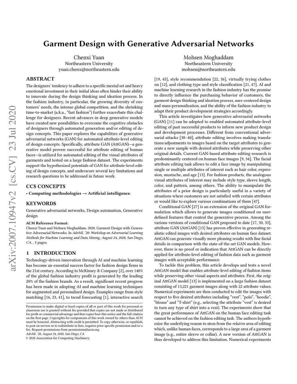 The designers' tendency to adhere to a specific mental set and heavy emotional investment in their initial ideas often hinder their ability to innovate during the design thinking and ideation process. In the fashion industry, in particular, the growing diversity of customers' needs, the intense global competition, and the shrinking time-to-market (a.k.a., "fast fashion") further exacerbate this challenge for designers. Recent advances in deep generative models have created new possibilities to overcome the cognitive obstacles of designers through automated generation and/or editing of design concepts. This paper explores the capabilities of generative adversarial networks (GAN) for automated attribute-level editing of design concepts. Specifically, attribute GAN (AttGAN)---a generative model proven successful for attribute editing of human faces---is utilized for automated editing of the visual attributes of garments and tested on a large fashion dataset. The experiments support the hypothesized potentials of GAN for attribute-level editing of design concepts, and underscore several key limitations and research questions to be addressed in future work.