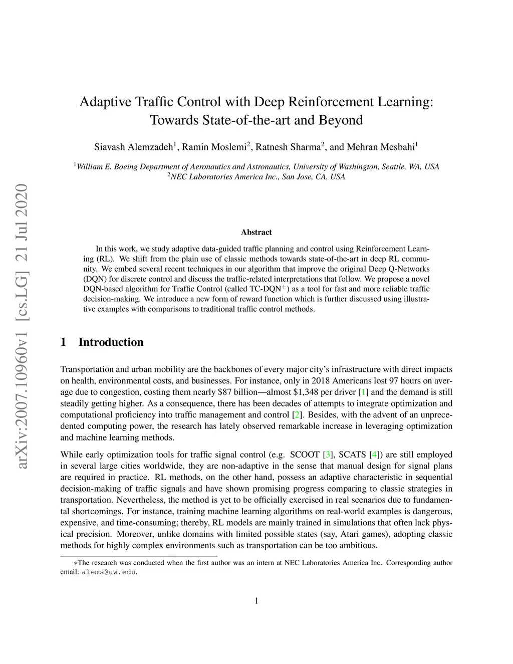 Adaptive Traffic Control with Deep Reinforcement Learning: Towards