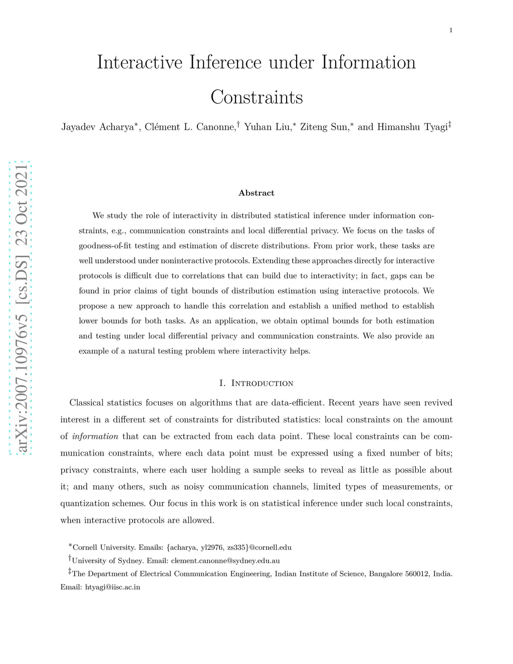 We study the role of interactivity in distributed statistical inference under information constraints, e.g., communication constraints and local differential privacy. We focus on the tasks of goodness-of-fit testing and estimation of discrete distributions. From prior work, these tasks are well understood under noninteractive protocols. Extending these approaches directly for interactive protocols is difficult due to correlations that can build due to interactivity; in fact, gaps can be found in prior claims of tight bounds of distribution estimation using interactive protocols. We propose a new approach to handle this correlation and establish a unified method to establish lower bounds for both tasks. As an application, we obtain optimal bounds for both estimation and testing under local differential privacy and communication constraints. We also provide an example of a natural testing problem where interactivity helps.
