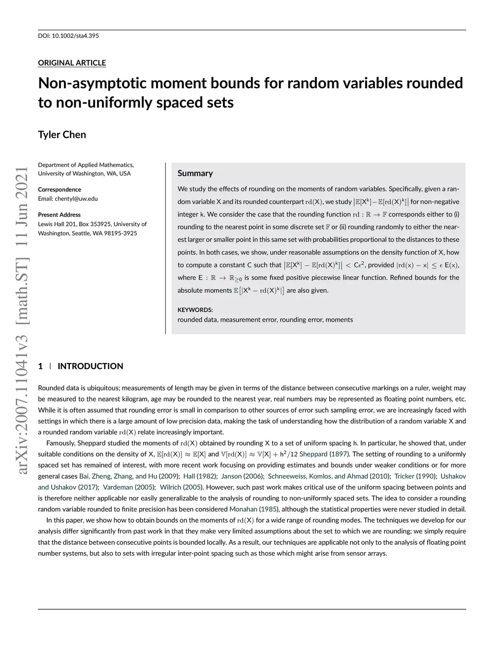 We study the effects of rounding on the moments of random variables. Specifically, given a random variable and its rounded counterpart , we study for non-negative integer . We consider the case that the rounding function corresponds either to (i) rounding to the nearest point in some discrete set or (ii) rounding randomly to either the nearest larger or smaller point in this same set with probabilities proportional to the distances to these points. In both cases, we show, under reasonable assumptions on the density function of , how to compute a constant such that , provided , where is some fixed positive piecewise linear function. Refined bounds for the absolute moments are also given.