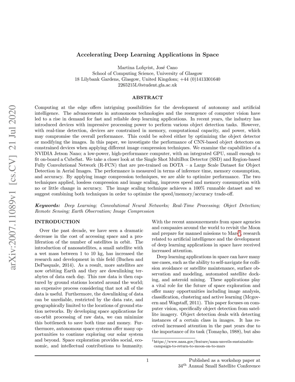 Accelerating Deep Learning Applications in Space