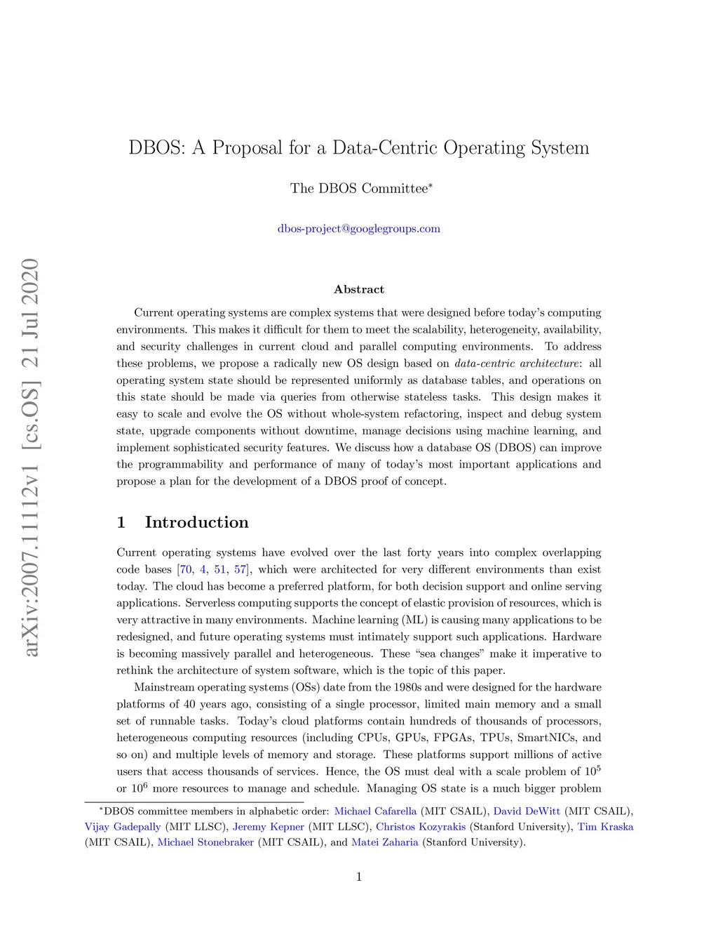 DBOS: A Proposal for a Data-Centric Operating System