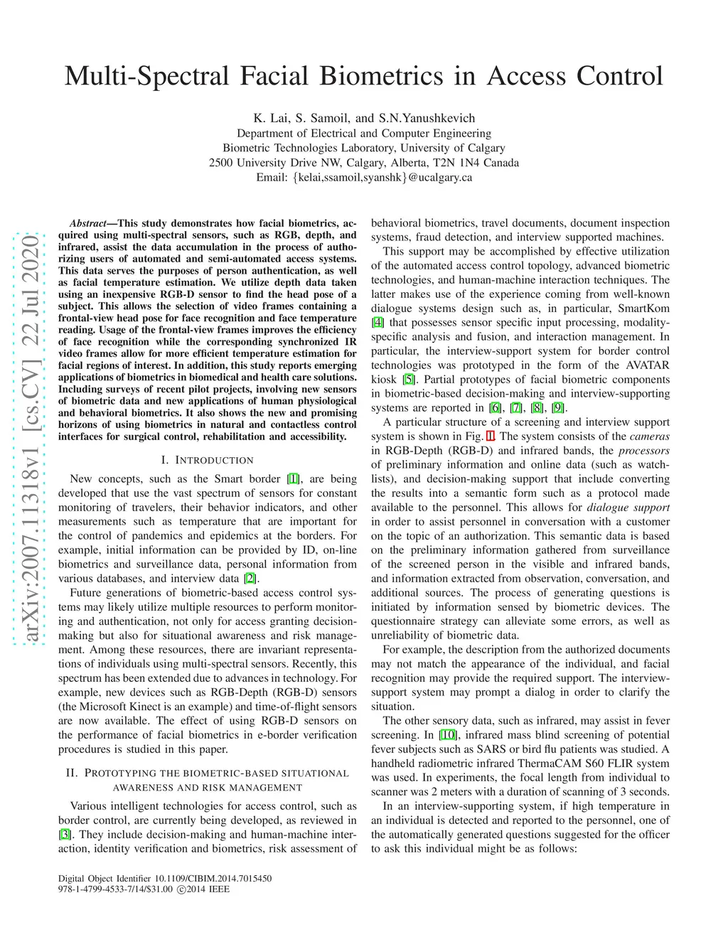 Multi-Spectral Facial Biometrics in Access Control