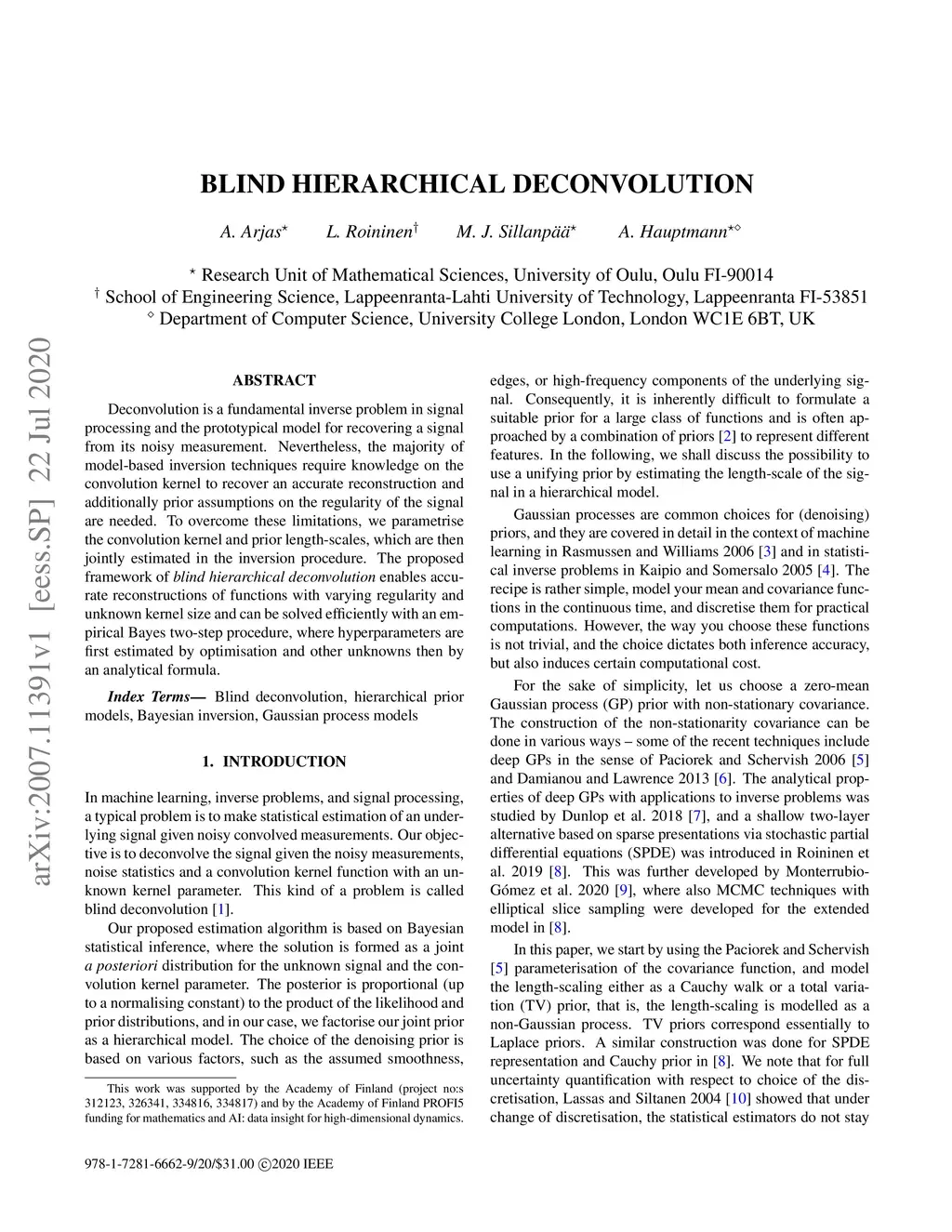 Deconvolution is a fundamental inverse problem in signal processing and the prototypical model for recovering a signal from its noisy measurement. Nevertheless, the majority of model-based inversion techniques require knowledge on the convolution kernel to recover an accurate reconstruction and additionally prior assumptions on the regularity of the signal are needed. To overcome these limitations, we parametrise the convolution kernel and prior length-scales, which are then jointly estimated in the inversion procedure. The proposed framework of blind hierarchical deconvolution enables accurate reconstructions of functions with varying regularity and unknown kernel size and can be solved efficiently with an empirical Bayes two-step procedure, where hyperparameters are first estimated by optimisation and other unknowns then by an analytical formula.