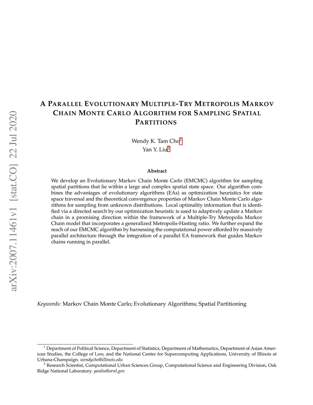 We develop an Evolutionary Markov Chain Monte Carlo (EMCMC) algorithm for sampling spatial partitions that lie within a large and complex spatial state space. Our algorithm combines the advantages of evolutionary algorithms (EAs) as optimization heuristics for state space traversal and the theoretical convergence properties of Markov Chain Monte Carlo algorithms for sampling from unknown distributions. Local optimality information that is identified via a directed search by our optimization heuristic is used to adaptively update a Markov chain in a promising direction within the framework of a Multiple-Try Metropolis Markov Chain model that incorporates a generalized Metropolis-Hasting ratio. We further expand the reach of our EMCMC algorithm by harnessing the computational power afforded by massively parallel architecture through the integration of a parallel EA framework that guides Markov chains running in parallel.