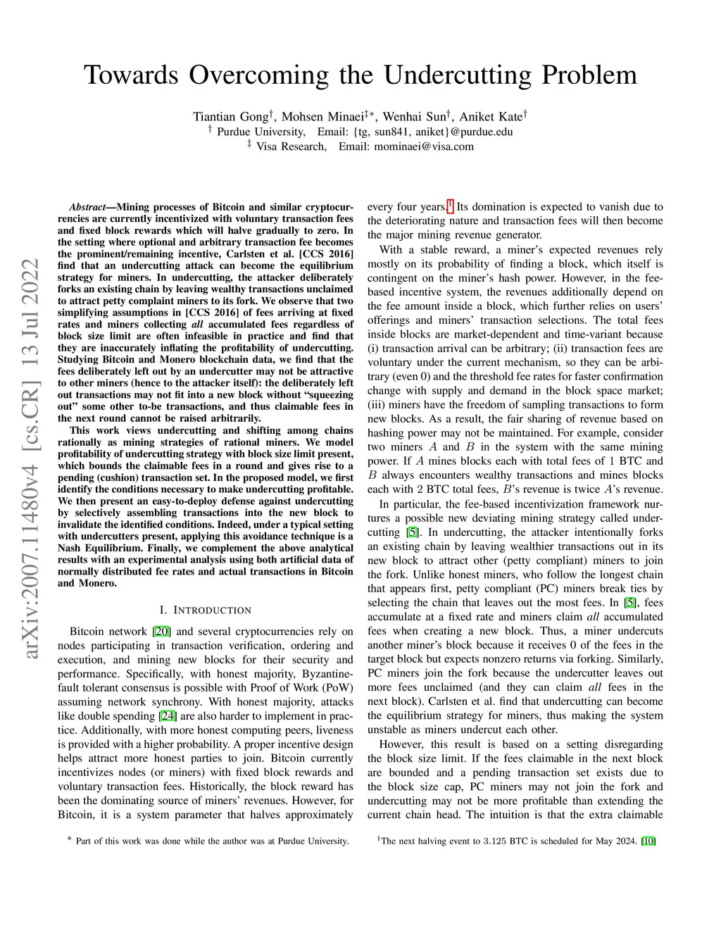 Mining processes of Bitcoin and similar cryptocurrencies are currently incentivized with voluntary transaction fees and fixed block rewards which will halve gradually to zero. In the setting where optional and arbitrary transaction fee becomes the remaining incentive, Carlsten et al.\ [CCS~2016] find that an undercutting attack can become the equilibrium strategy for miners. In undercutting, the attacker deliberately forks an existing chain by leaving wealthy transactions unclaimed to attract petty complaint miners to its fork. We observe that two simplifying assumptions in [CCS~2016] of fees arriving at fixed rates and miners collecting {\em all} accumulated fees regardless of block size limit are often infeasible in practice and find that they are inaccurately inflating the profitability of undercutting. Studying Bitcoin and Monero blockchain data, we find that the fees deliberately left out by an undercutter may not be attractive to other miners (hence to the attacker itself): the deliberately left out transactions may not fit into a new block without "squeezing out" some other to-be transactions, and thus claimable fees in the next round cannot be raised arbitrarily. This work views undercutting and shifting among chains rationally as mining strategies of rational miners. We model profitability of undercutting strategy with block size limit present, which bounds the claimable fees in a round and gives rise to a pending (cushion) transaction set. In the proposed model, we first identify the conditions necessary to make undercutting profitable. We then present an easy-to-deploy defense against undercutting by selectively assembling transactions into the new block to invalidate the identified conditions. Under a typical setting with undercutters present, applying this avoidance technique is a Nash Equilibrium. Finally, we complement the above analytical results with experiments.