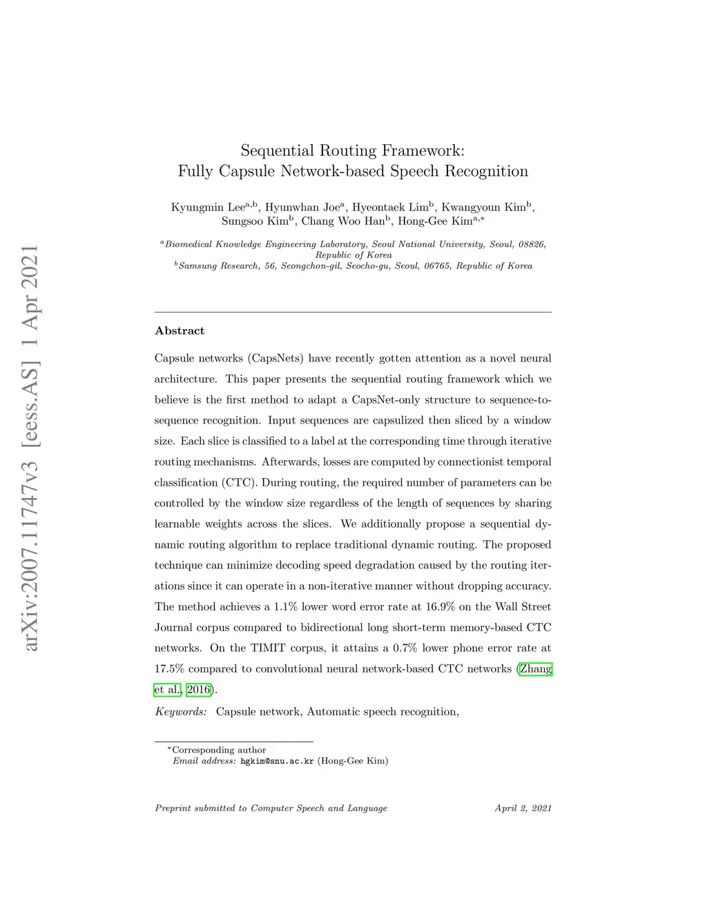 Sequential Routing Framework: Fully Capsule Network-based Speech