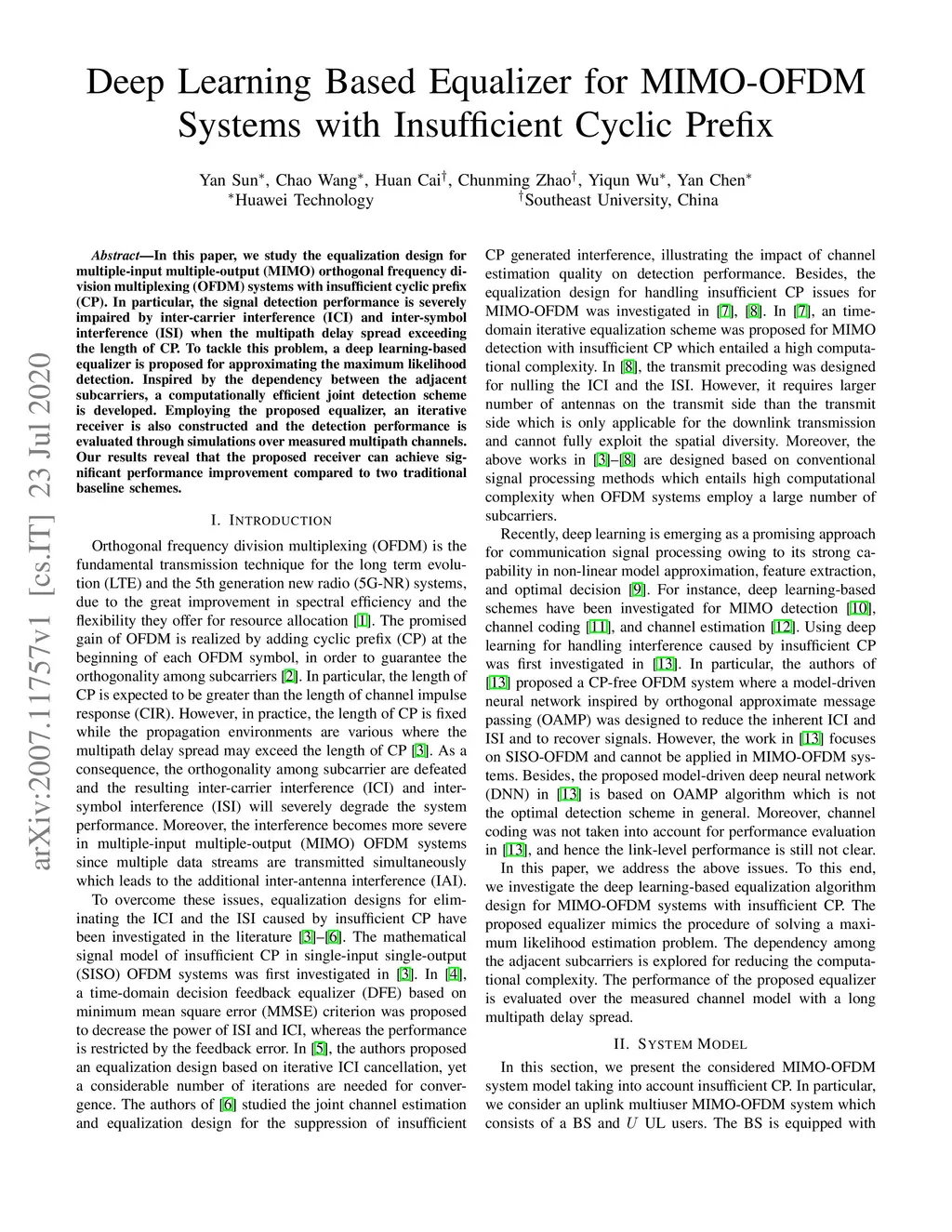 Deep Learning Based Equalizer for MIMO-OFDM Systems with Insufficient