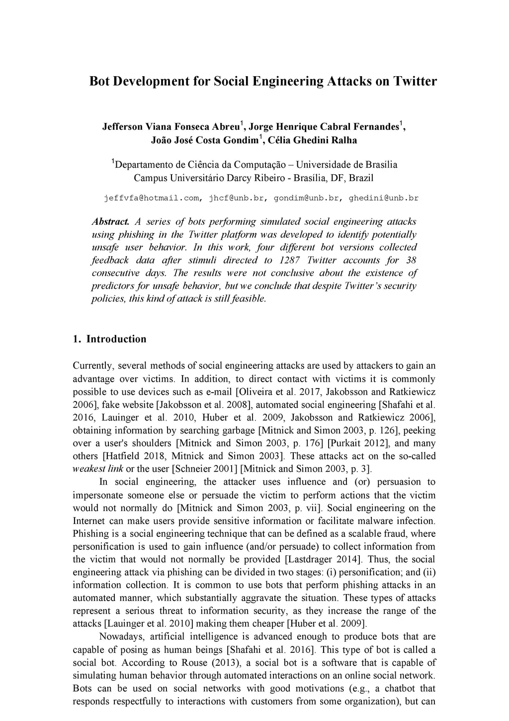 A series of bots performing simulated social engineering attacks using phishing in the Twitter platform was developed to identify potentially unsafe user behavior. In this work different bot versions were developed to collect feedback data after stimuli directed to 1,287 twitter accounts for 38 consecutive days. The results were not conclusive about the existence of preceptors for unsafe behavior, but we conclude that despite Twiter's security this kind of attack is still feasible.