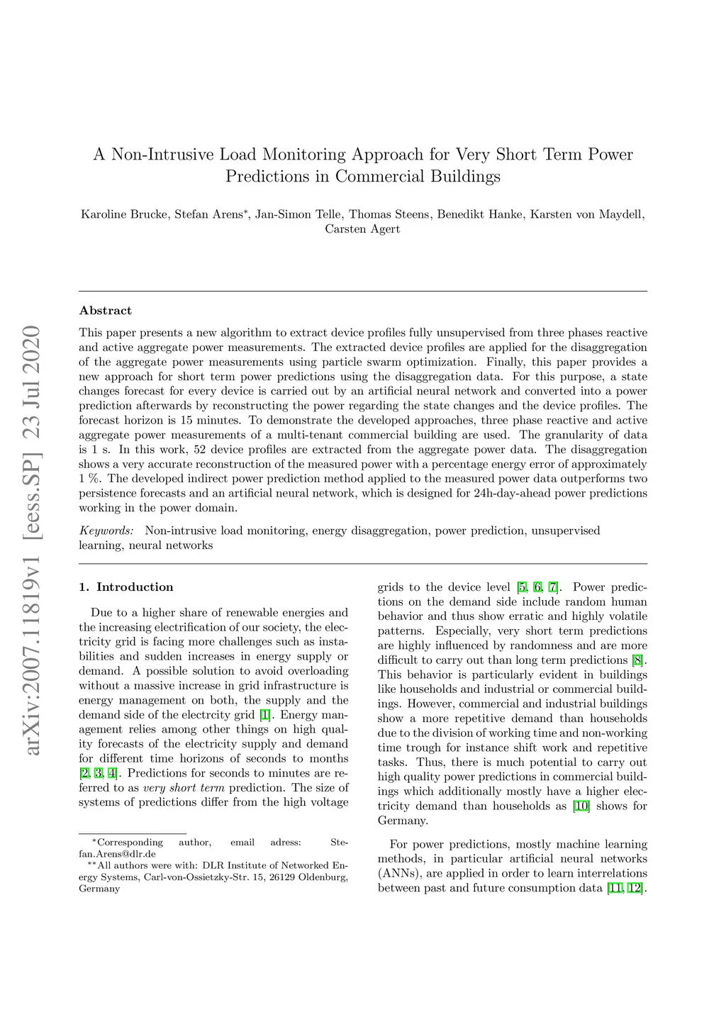 A Non-Intrusive Load Monitoring Approach for Very Short Term Power