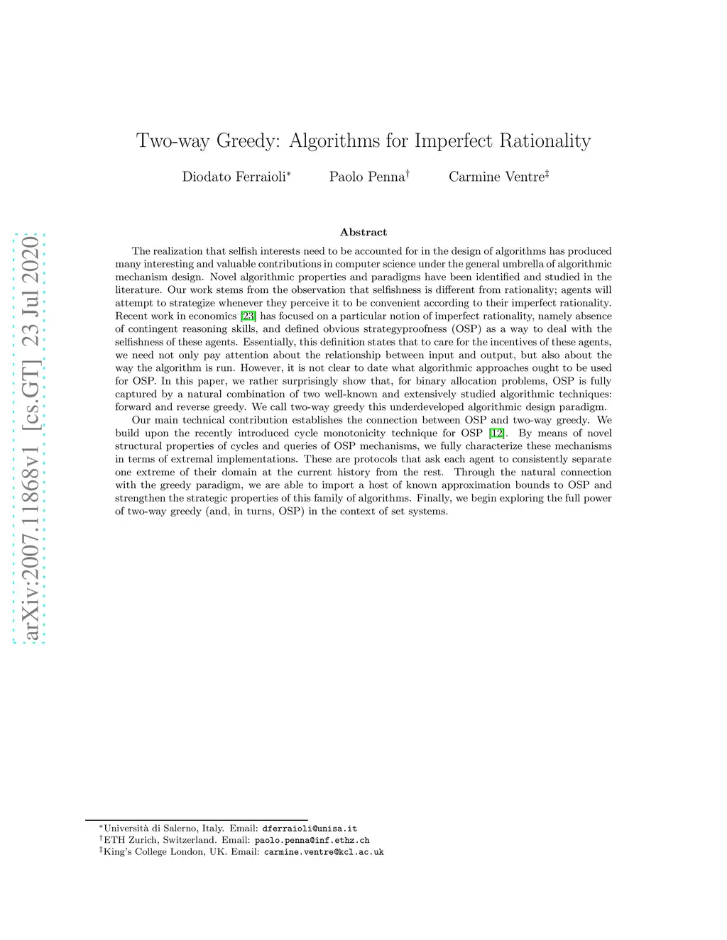 Two-way Greedy: Algorithms for Imperfect Rationality