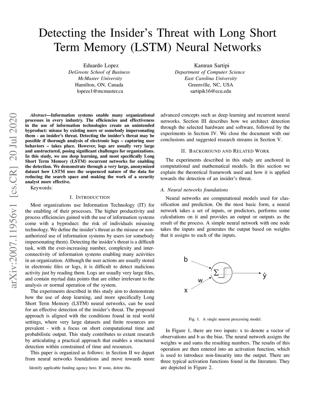 Detecting the Insider Threat with Long Short Term Memory (LSTM) Neural