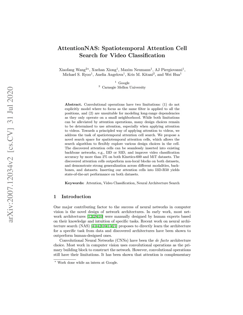 AttentionNAS: Spatiotemporal Attention Cell Search for Video