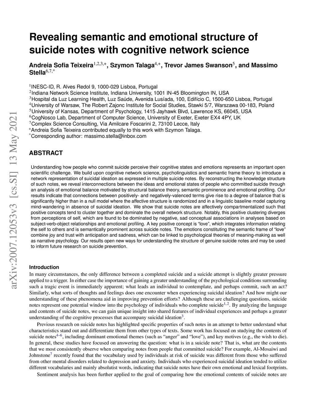 Revealing semantic and emotional structure of suicide notes with