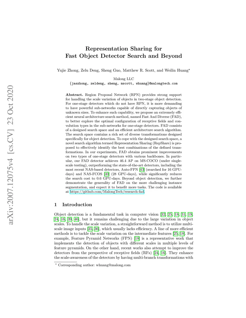 Region Proposal Network (RPN) provides strong support for handling the scale variation of objects in two-stage object detection. For one-stage detectors which do not have RPN, it is more demanding to have powerful sub-networks capable of directly capturing objects of unknown sizes. To enhance such capability, we propose an extremely efficient neural architecture search method, named Fast And Diverse (FAD), to better explore the optimal configuration of receptive fields and convolution types in the sub-networks for one-stage detectors. FAD consists of a designed search space and an efficient architecture search algorithm. The search space contains a rich set of diverse transformations designed specifically for object detection. To cope with the designed search space, a novel search algorithm termed Representation Sharing (RepShare) is proposed to effectively identify the best combinations of the defined transformations. In our experiments, FAD obtains prominent improvements on two types of one-stage detectors with various backbones. In particular, our FAD detector achieves 46.4 AP on MS-COCO (under single-scale testing), outperforming the state-of-the-art detectors, including the most recent NAS-based detectors, Auto-FPN (searched for 16 GPU-days) and NAS-FCOS (28 GPU-days), while significantly reduces the search cost to 0.6 GPU-days. Beyond object detection, we further demonstrate the generality of FAD on the more challenging instance segmentation, and expect it to benefit more tasks.