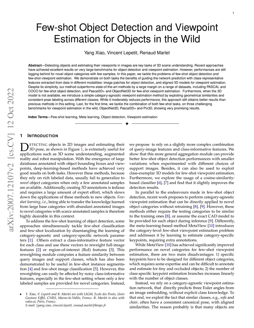 Few-Shot Object Detection and Viewpoint Estimation for Objects in the