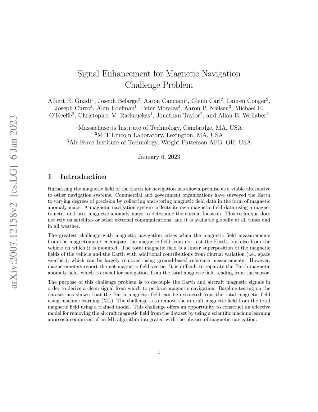 Harnessing the magnetic field of the Earth for navigation has shown promise as a viable alternative to other navigation systems. A magnetic navigation system collects its own magnetic field data using a magnetometer and uses magnetic anomaly maps to determine the current location. The greatest challenge with magnetic navigation arises when the magnetic field measurements from the magnetometer encompass the magnetic field from not just the Earth, but also from the vehicle on which it is mounted. It is difficult to separate the Earth magnetic anomaly field, which is crucial for navigation, from the total magnetic field reading from the sensor. The purpose of this challenge problem is to decouple the Earth and aircraft magnetic signals in order to derive a clean signal from which to perform magnetic navigation. Baseline testing on the dataset has shown that the Earth magnetic field can be extracted from the total magnetic field using machine learning (ML). The challenge is to remove the aircraft magnetic field from the total magnetic field using a trained model. This challenge offers an opportunity to construct an effective model for removing the aircraft magnetic field from the dataset by using a scientific machine learning (SciML) approach comprised of an ML algorithm integrated with the physics of magnetic navigation.