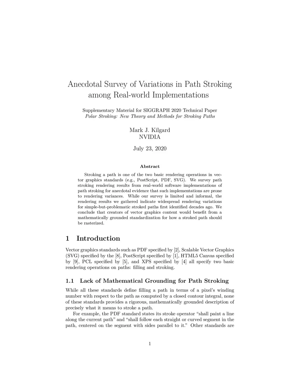 Stroking a path is one of the two basic rendering operations in vector graphics standards (e.g., PostScript, PDF, SVG). We survey path stroking rendering results from real-world software implementations of path stroking for anecdotal evidence that such implementations are prone to rendering variances. While our survey is limited and informal, the rendering results we gathered indicate widespread rendering variations for simple-but-problematic stroked paths first identified decades ago. We conclude that creators of vector graphics content would benefit from a mathematically grounded standardization for how a stroked path should be rasterized.