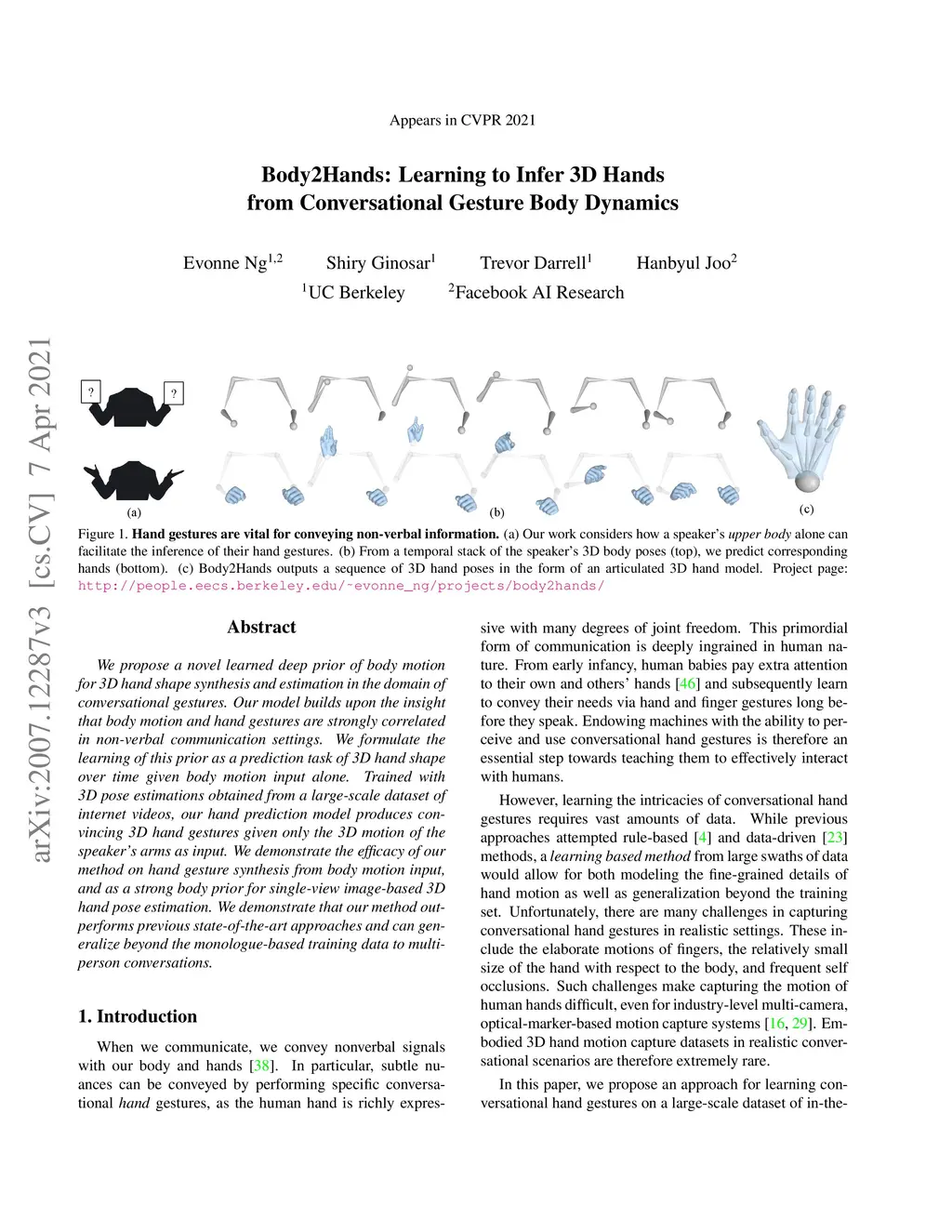 Body2Hands: Learning to Infer 3D Hands from Conversational Gesture Body