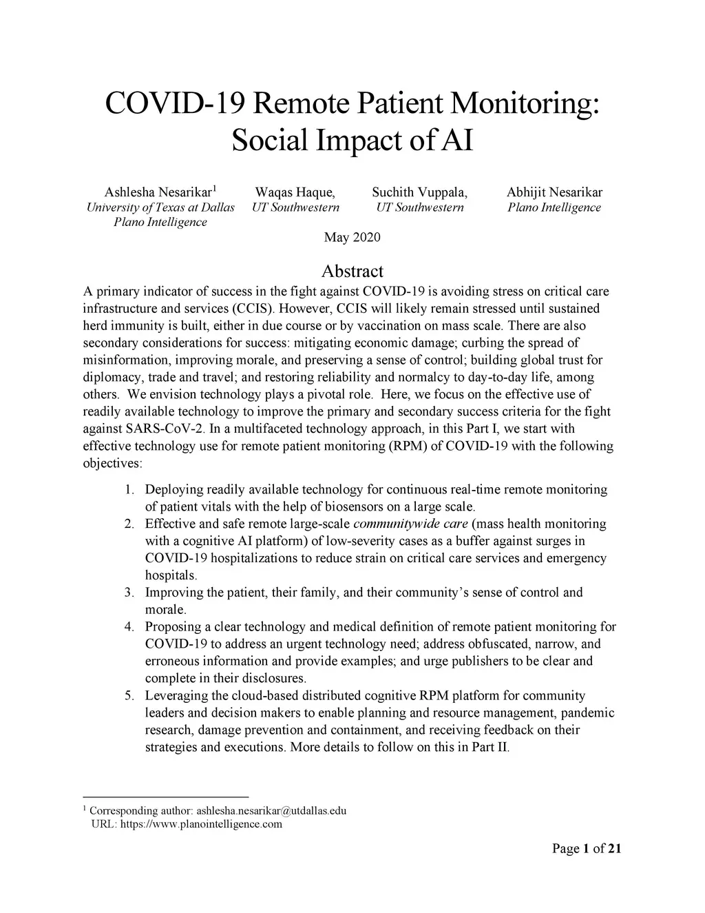COVID-19 Remote Patient Monitoring: Social Impact of AI