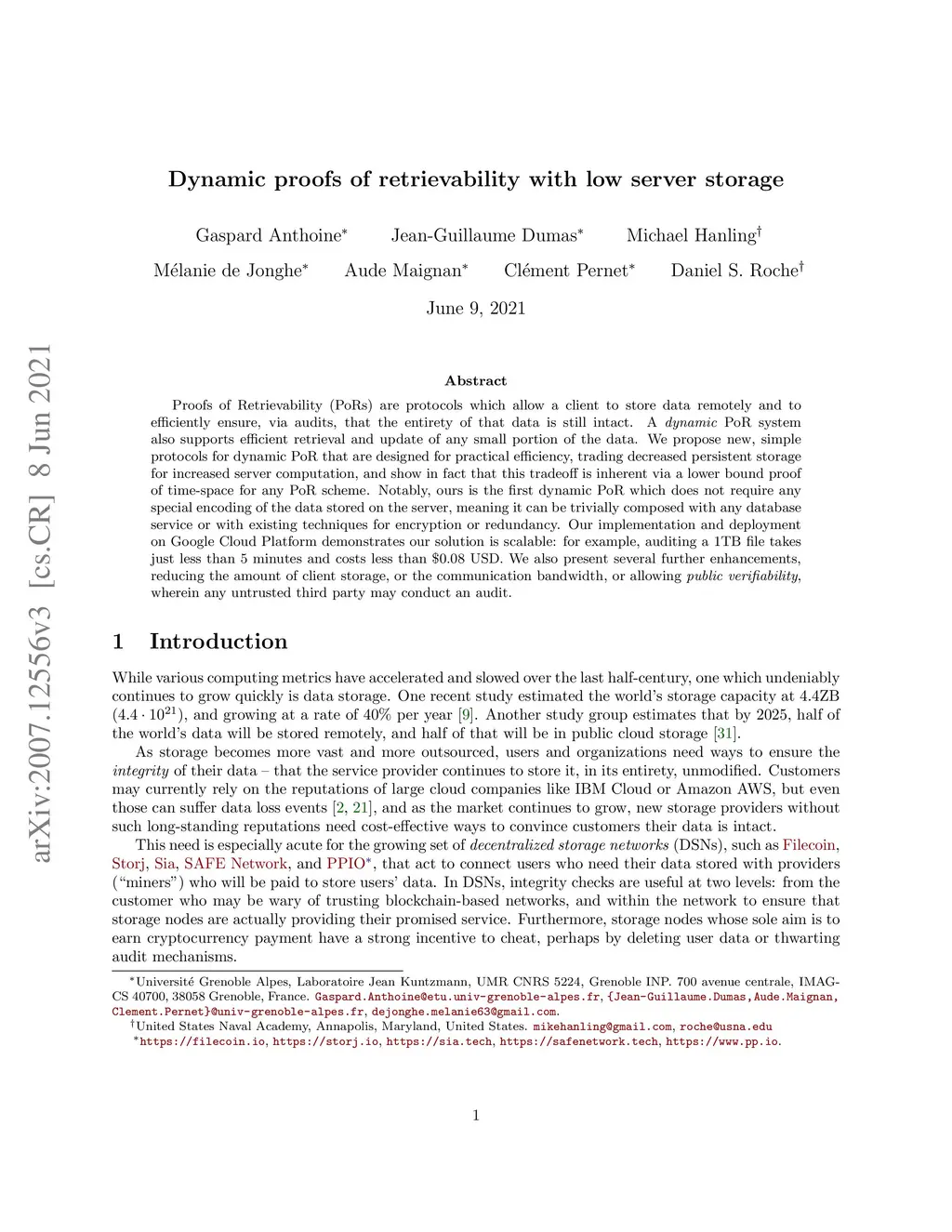 Proofs of Retrievability (PoRs) are protocols which allow a client to store data remotely and to efficiently ensure, via audits, that the entirety of that data is still intact. A dynamic PoR system also supports efficient retrieval and update of any small portion of the data. We propose new, simple protocols for dynamic PoR that are designed for practical efficiency, trading decreased persistent storage for increased server computation, and show in fact that this tradeoff is inherent via a lower bound proof of time-space for any PoR scheme. Notably, ours is the first dynamic PoR which does not require any special encoding of the data stored on the server, meaning it can be trivially composed with any database service or with existing techniques for encryption or redundancy. Our implementation and deployment on Google Cloud Platform demonstrates our solution is scalable: for example, auditing a 1TB file takes just less than 5 minutes and costs less than $0.08 USD. We also present several further enhancements, reducing the amount of client storage, or the communication bandwidth, or allowing public verifiability, wherein any untrusted third party may conduct an audit.