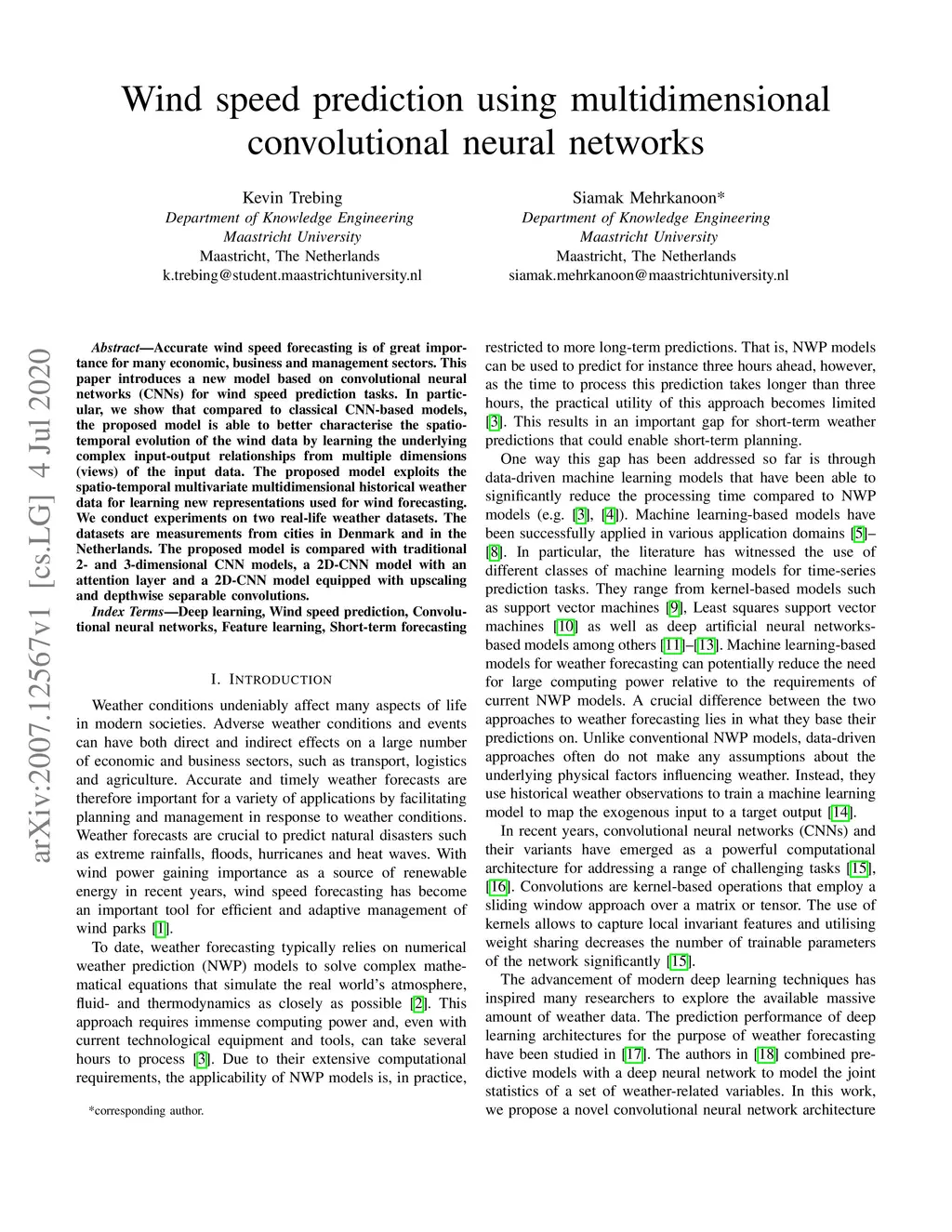 Wind speed prediction using multidimensional convolutional neural