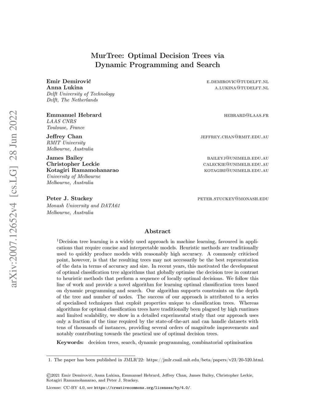 MurTree: Optimal Classification Trees via Dynamic Programming and Search