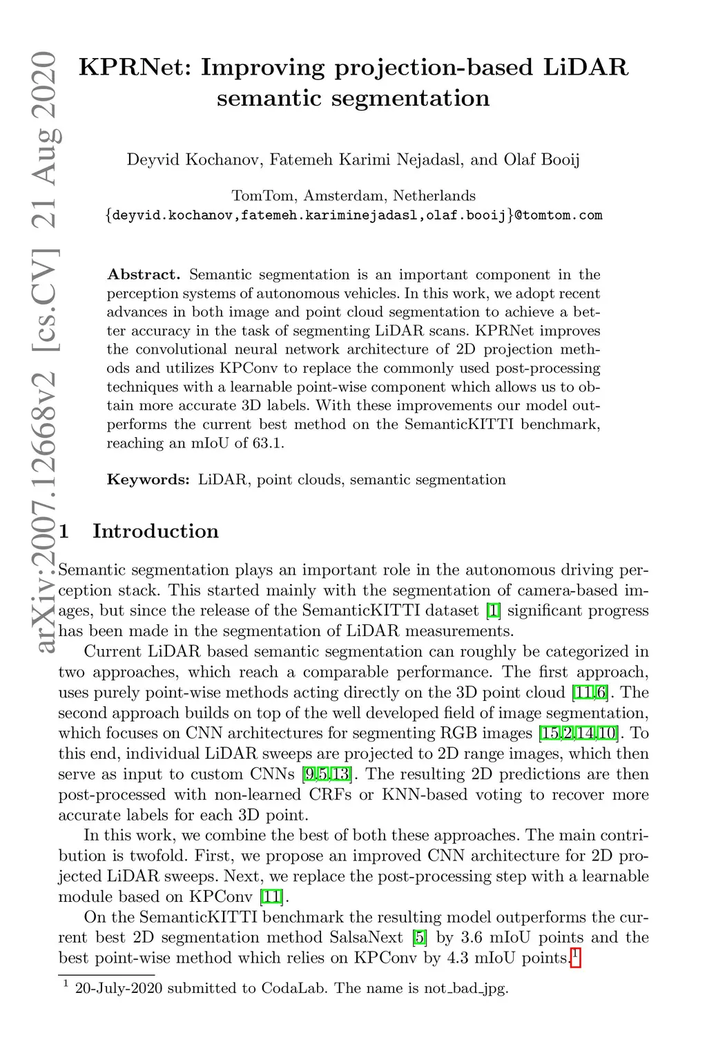 KPRNet: Improving projection-based LiDAR semantic segmentation