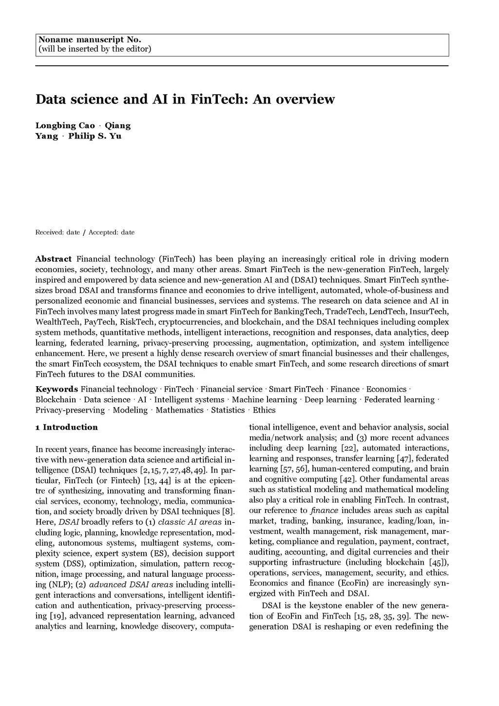 Financial technology (FinTech) has been playing an increasingly critical role in driving modern economies, society, technology, and many other areas. Smart FinTech is the new-generation FinTech, largely inspired and empowered by data science and new-generation AI and (DSAI) techniques. Smart FinTech synthesizes broad DSAI and transforms finance and economies to drive intelligent, automated, whole-of-business and personalized economic and financial businesses, services and systems. The research on data science and AI in FinTech involves many latest progress made in smart FinTech for BankingTech, TradeTech, LendTech, InsurTech, WealthTech, PayTech, RiskTech, cryptocurrencies, and blockchain, and the DSAI techniques including complex system methods, quantitative methods, intelligent interactions, recognition and responses, data analytics, deep learning, federated learning, privacy-preserving processing, augmentation, optimization, and system intelligence enhancement. Here, we present a highly dense research overview of smart financial businesses and their challenges, the smart FinTech ecosystem, the DSAI techniques to enable smart FinTech, and some research directions of smart FinTech futures to the DSAI communities.
