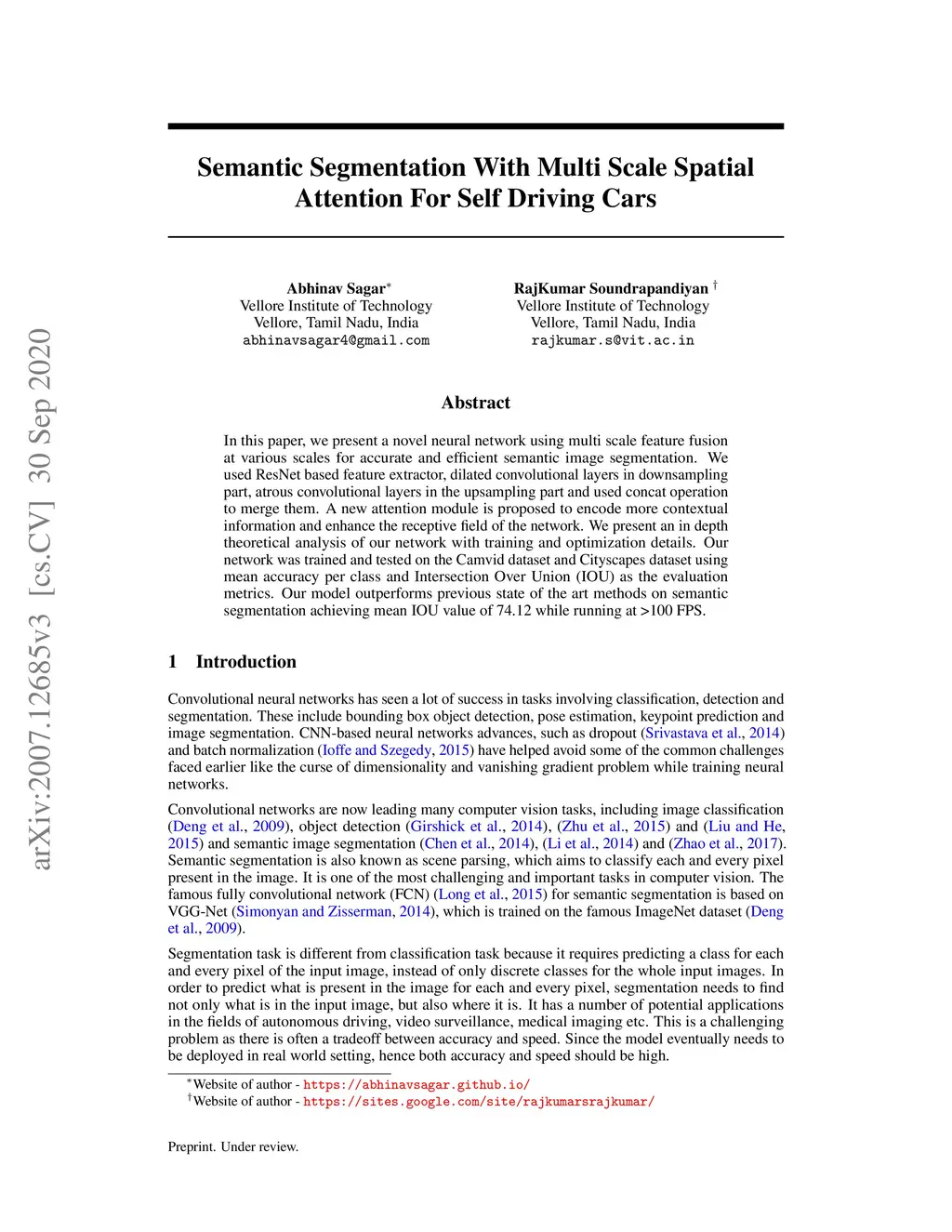 Semantic Segmentation With Multi Scale Spatial Attention For Self