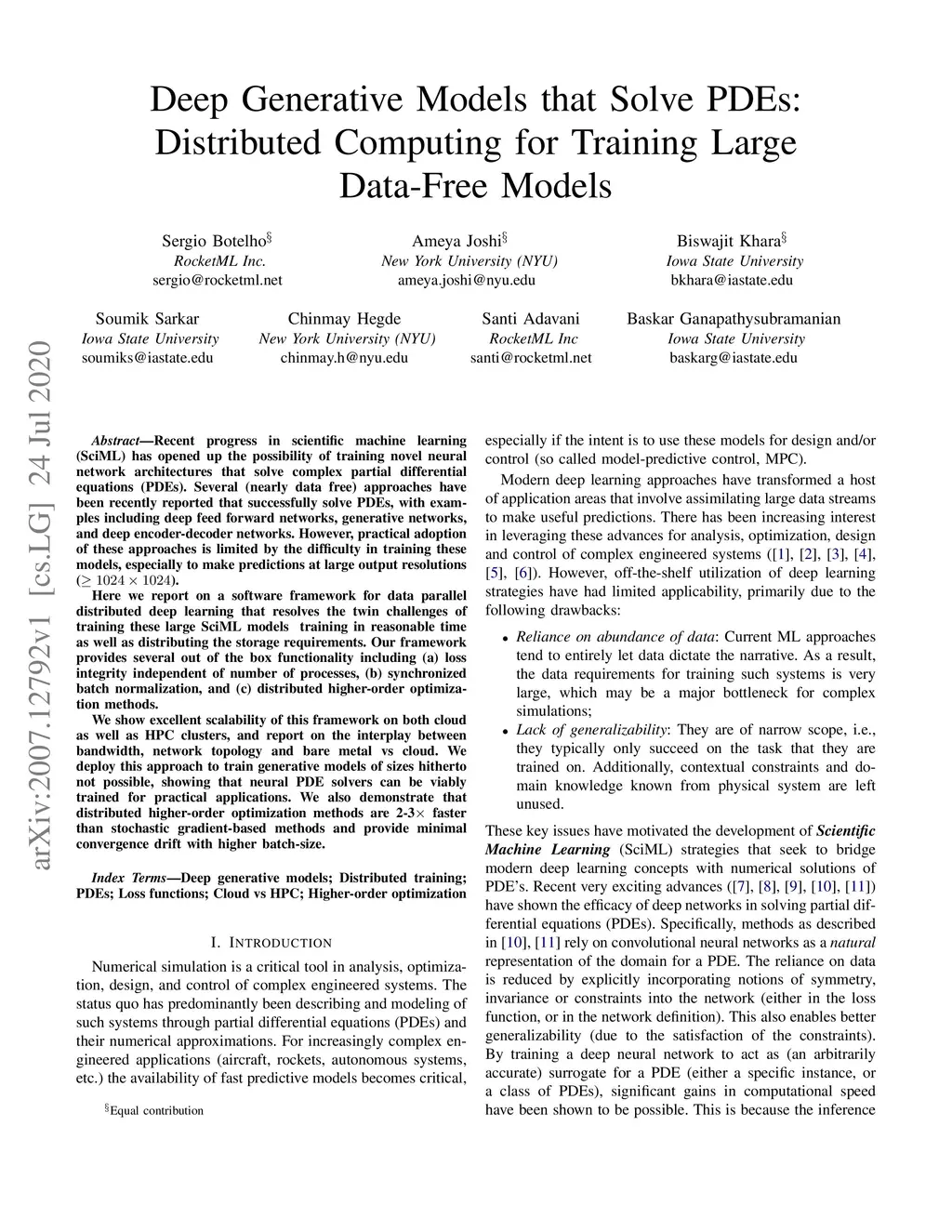 Deep Generative Models that Solve PDEs: Distributed Computing for