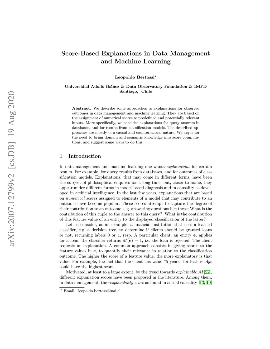 We describe some approaches to explanations for observed outcomes in data management and machine learning. They are based on the assignment of numerical scores to predefined and potentially relevant inputs. More specifically, we consider explanations for query answers in databases, and for results from classification models. The described approaches are mostly of a causal and counterfactual nature. We argue for the need to bring domain and semantic knowledge into score computations; and suggest some ways to do this.