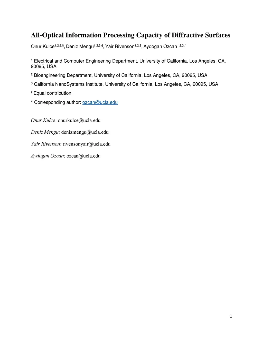All-Optical Information Processing Capacity of Diffractive Surfaces