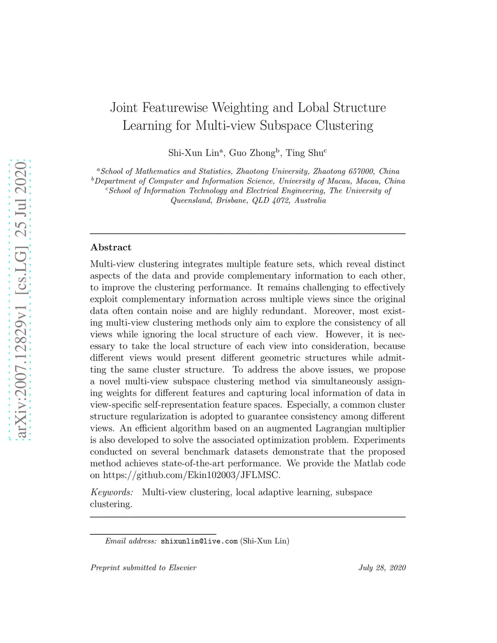 Joint Featurewise Weighting and Lobal Structure Learning for Multi-view