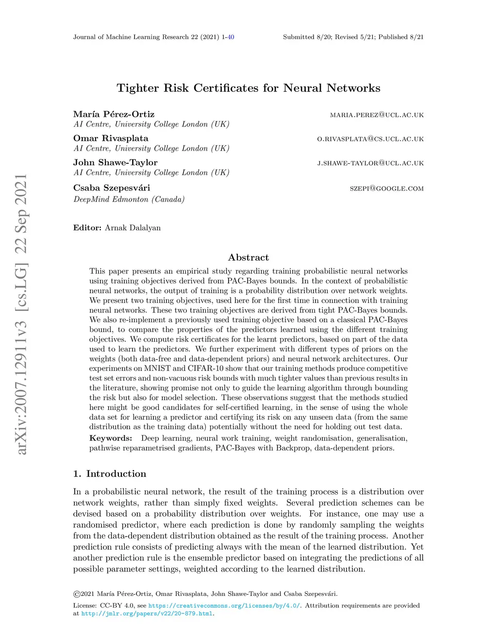 Tighter risk certificates for neural networks