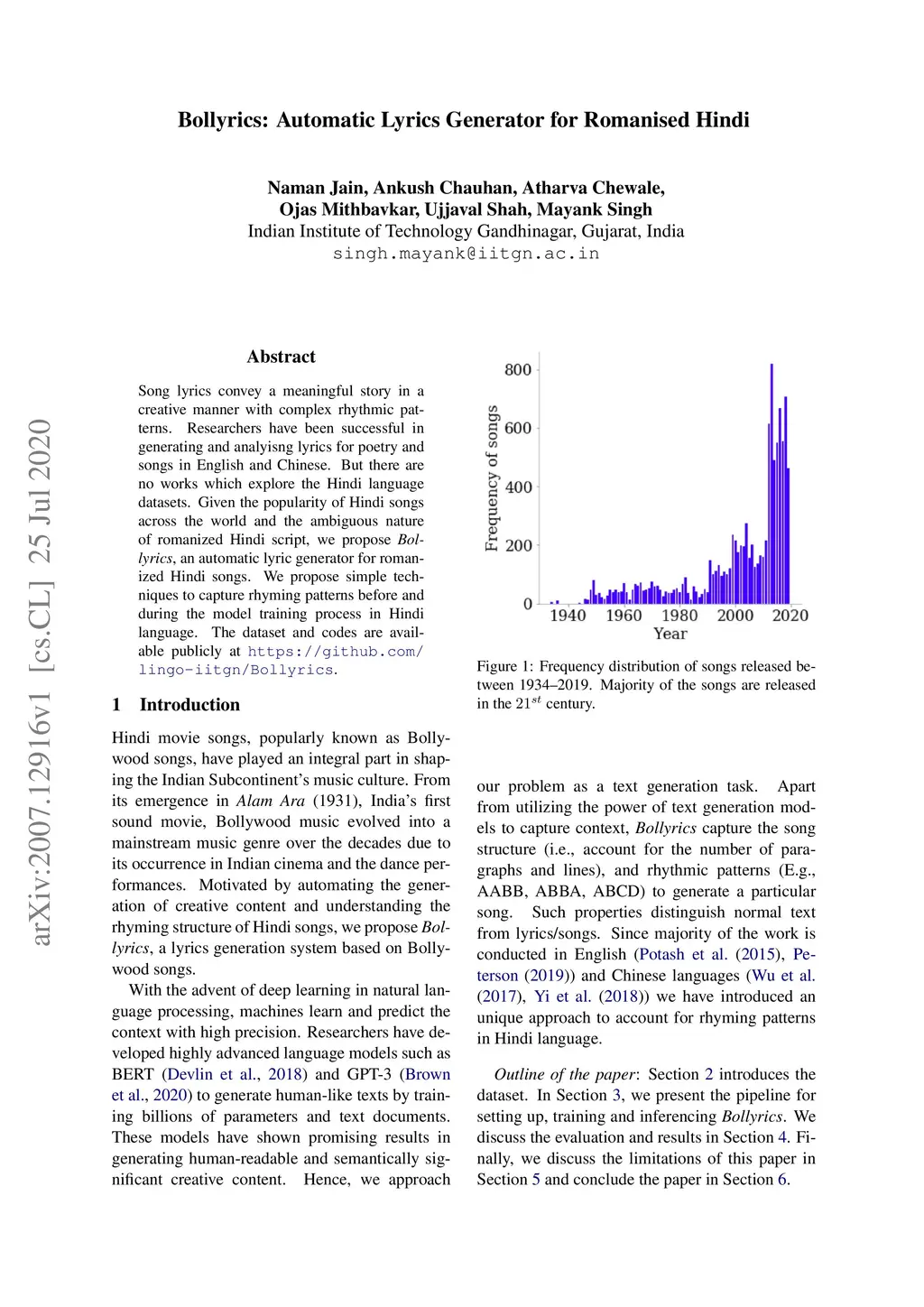 Bollyrics: Automatic Lyrics Generator for Romanised Hindi