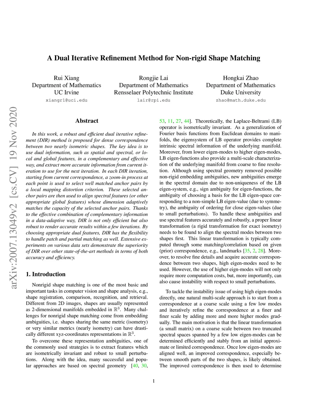 A Dual Iterative Refinement Method for Non-rigid Shape Matching