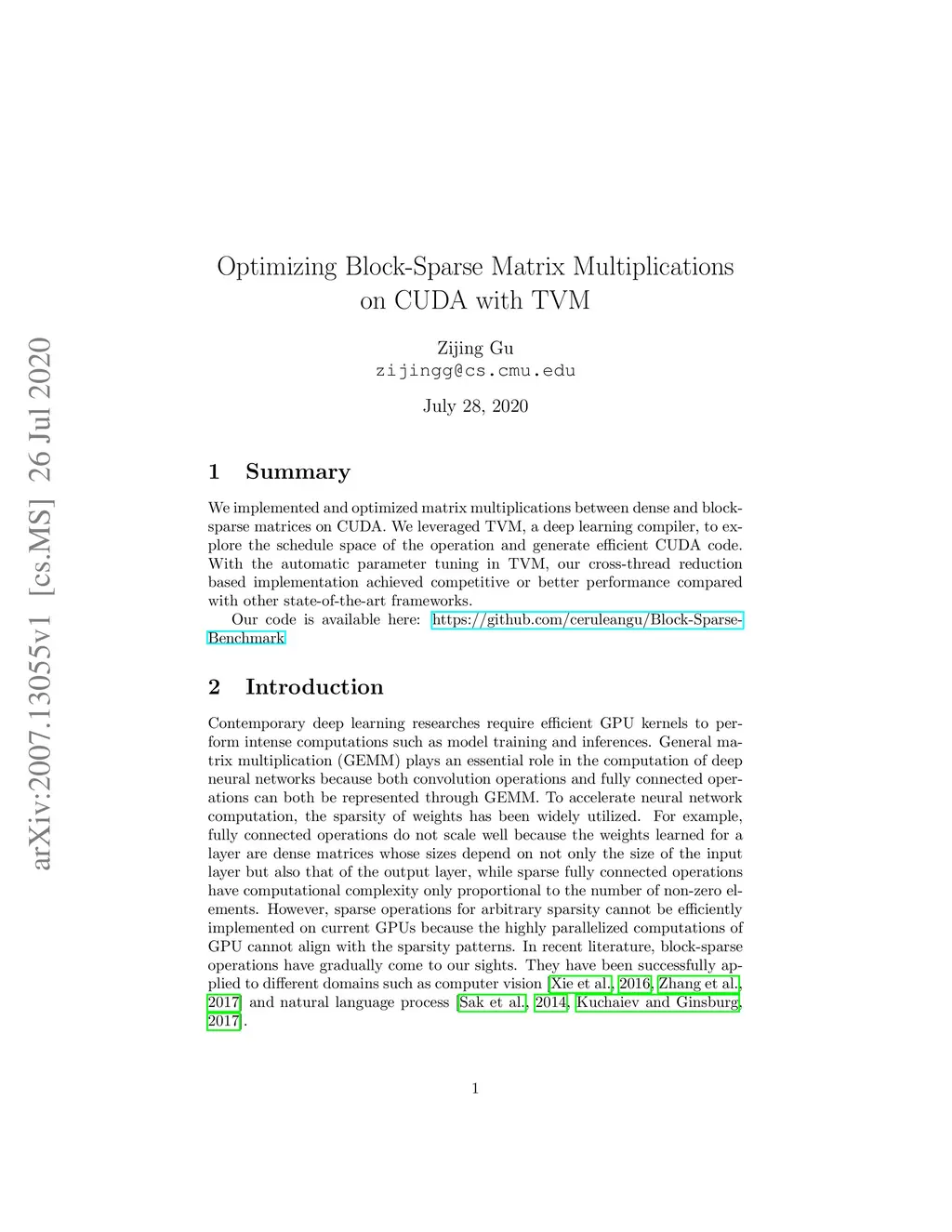 Optimizing Block-Sparse Matrix Multiplications on CUDA with TVM
