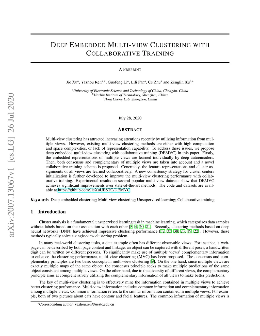 Deep Embedded Multi-view Clustering with Collaborative Training
