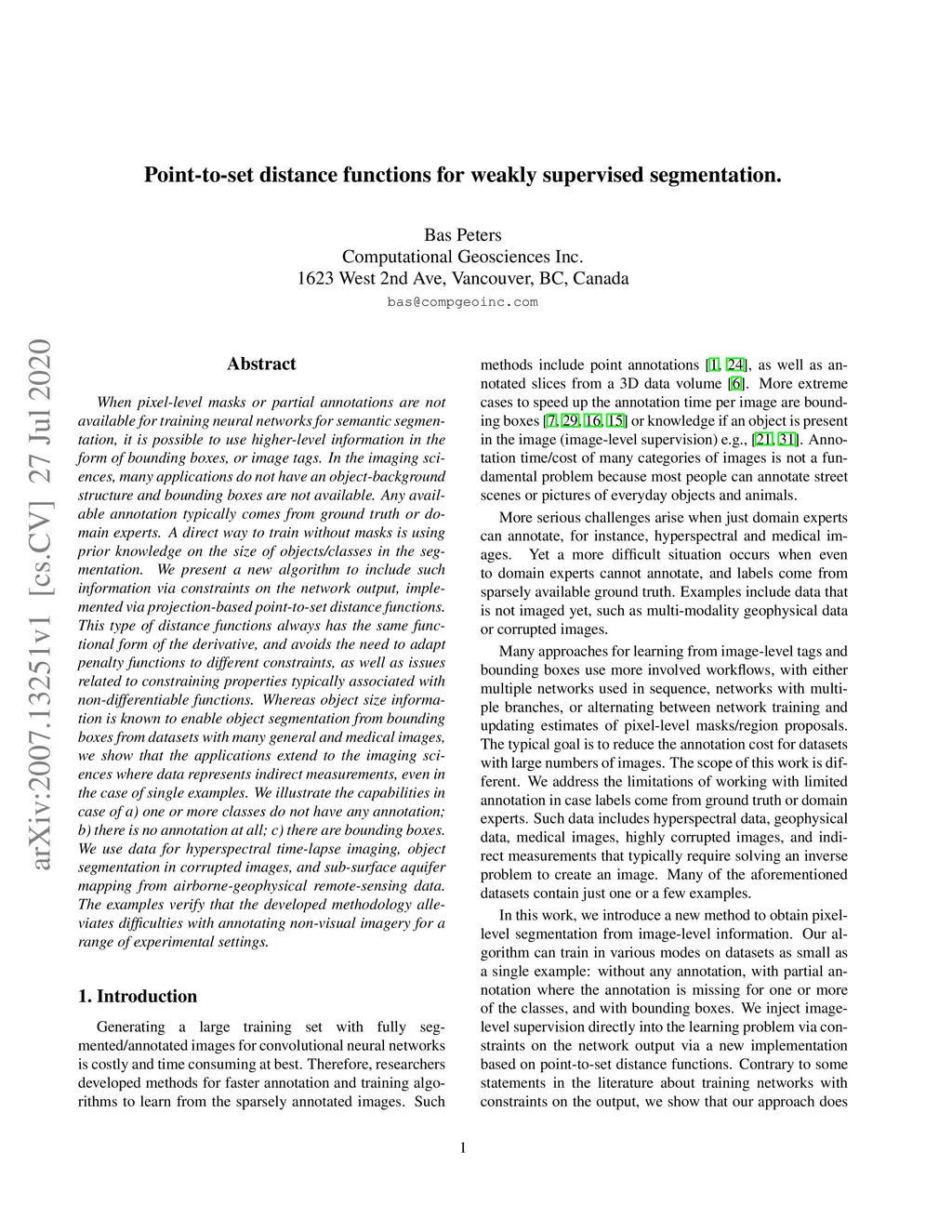 Point-to-set distance functions for weakly supervised segmentation