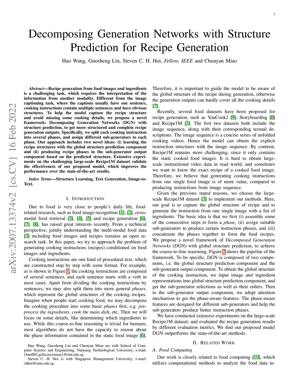 Decomposed Generation Networks with Structure Prediction for Recipe