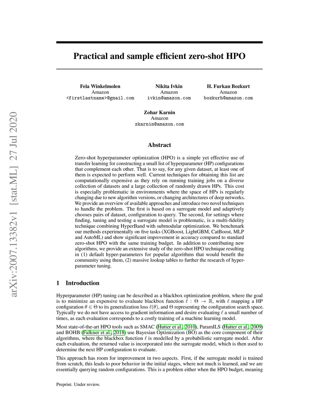 Zero-shot hyperparameter optimization (HPO) is a simple yet effective use of transfer learning for constructing a small list of hyperparameter (HP) configurations that complement each other. That is to say, for any given dataset, at least one of them is expected to perform well. Current techniques for obtaining this list are computationally expensive as they rely on running training jobs on a diverse collection of datasets and a large collection of randomly drawn HPs. This cost is especially problematic in environments where the space of HPs is regularly changing due to new algorithm versions, or changing architectures of deep networks. We provide an overview of available approaches and introduce two novel techniques to handle the problem. The first is based on a surrogate model and adaptively chooses pairs of dataset, configuration to query. The second, for settings where finding, tuning and testing a surrogate model is problematic, is a multi-fidelity technique combining HyperBand with submodular optimization. We benchmark our methods experimentally on five tasks (XGBoost, LightGBM, CatBoost, MLP and AutoML) and show significant improvement in accuracy compared to standard zero-shot HPO with the same training budget. In addition to contributing new algorithms, we provide an extensive study of the zero-shot HPO technique resulting in (1) default hyper-parameters for popular algorithms that would benefit the community using them, (2) massive lookup tables to further the research of hyper-parameter tuning.