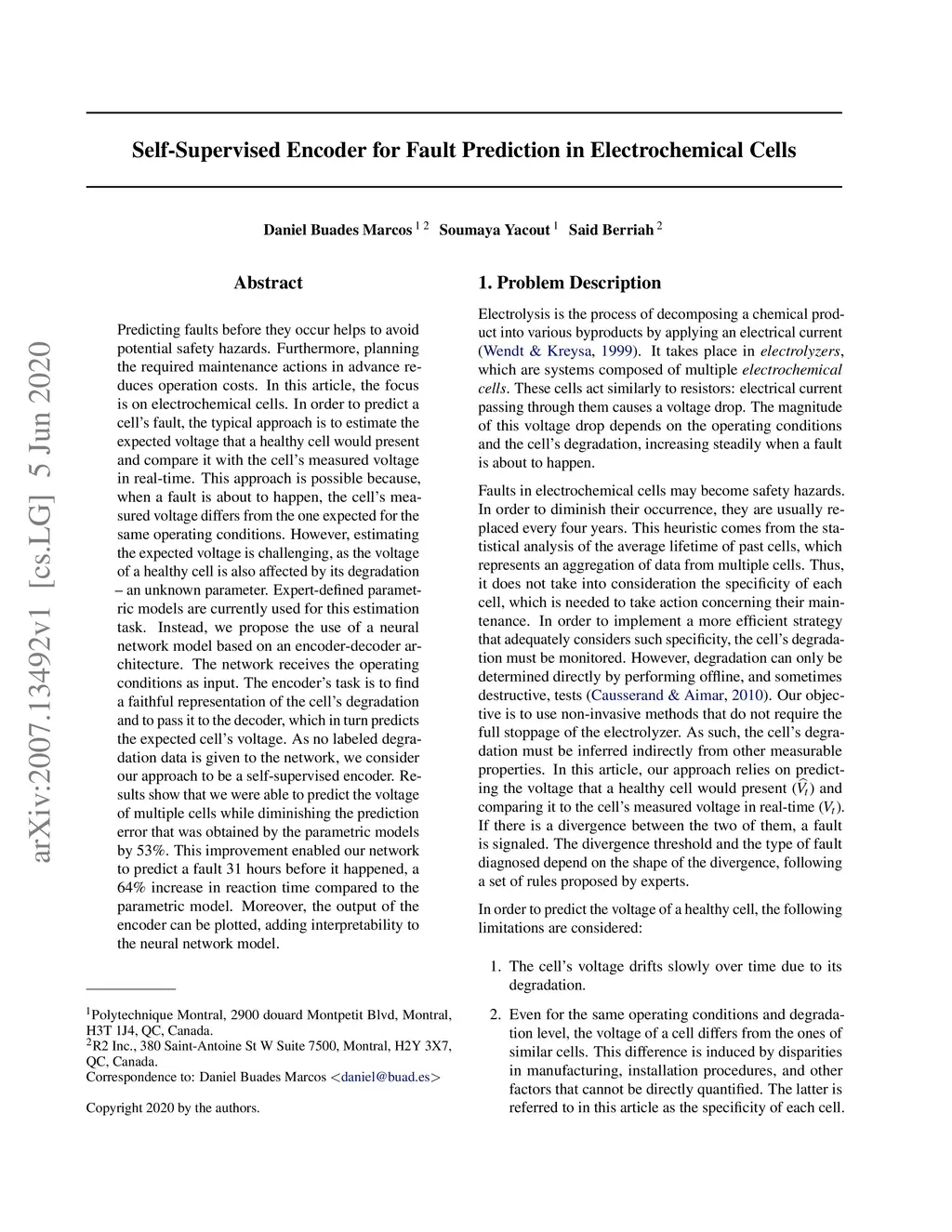 Self-Supervised Encoder for Fault Prediction in Electrochemical Cells