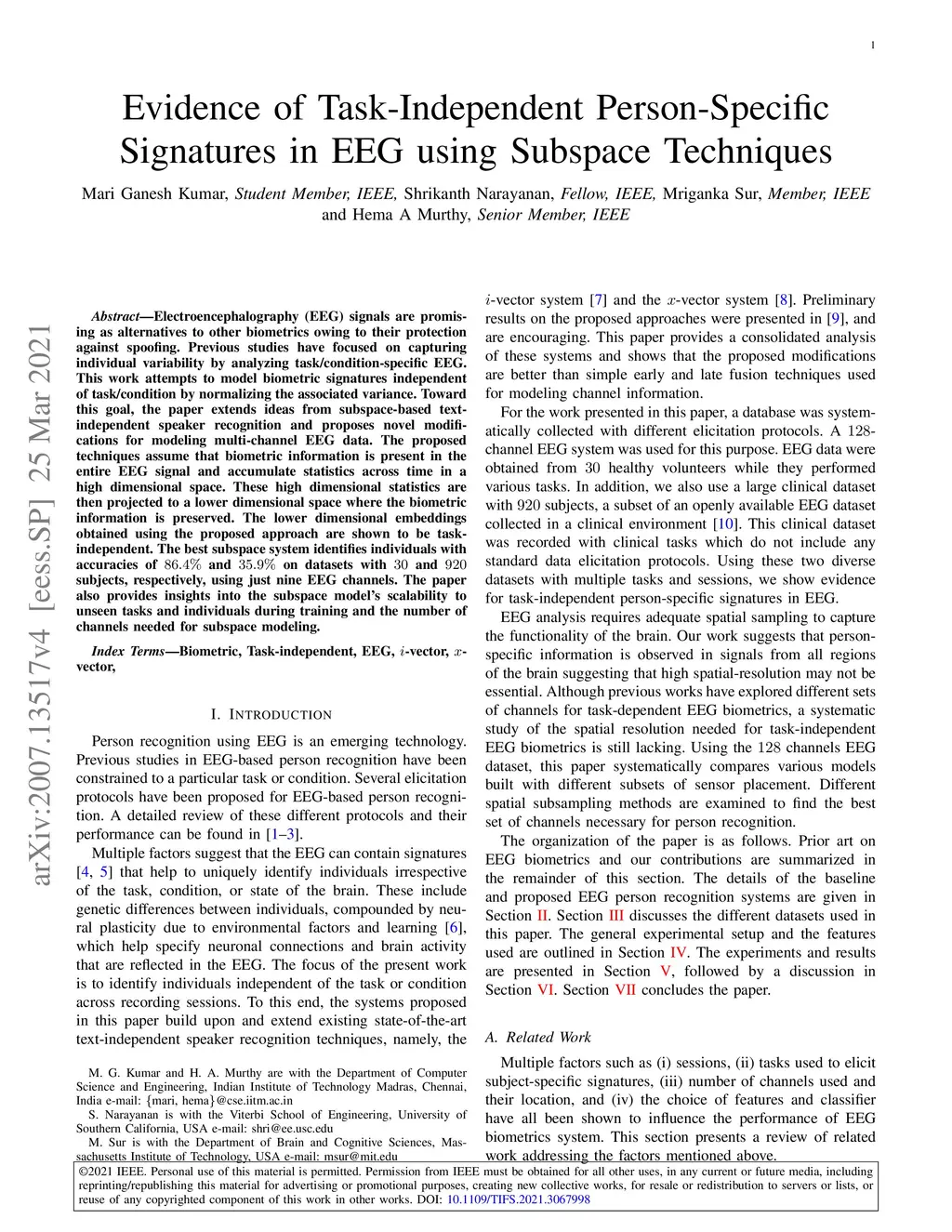 Evidence of Task-Independent Person-Specific Signatures in EEG using