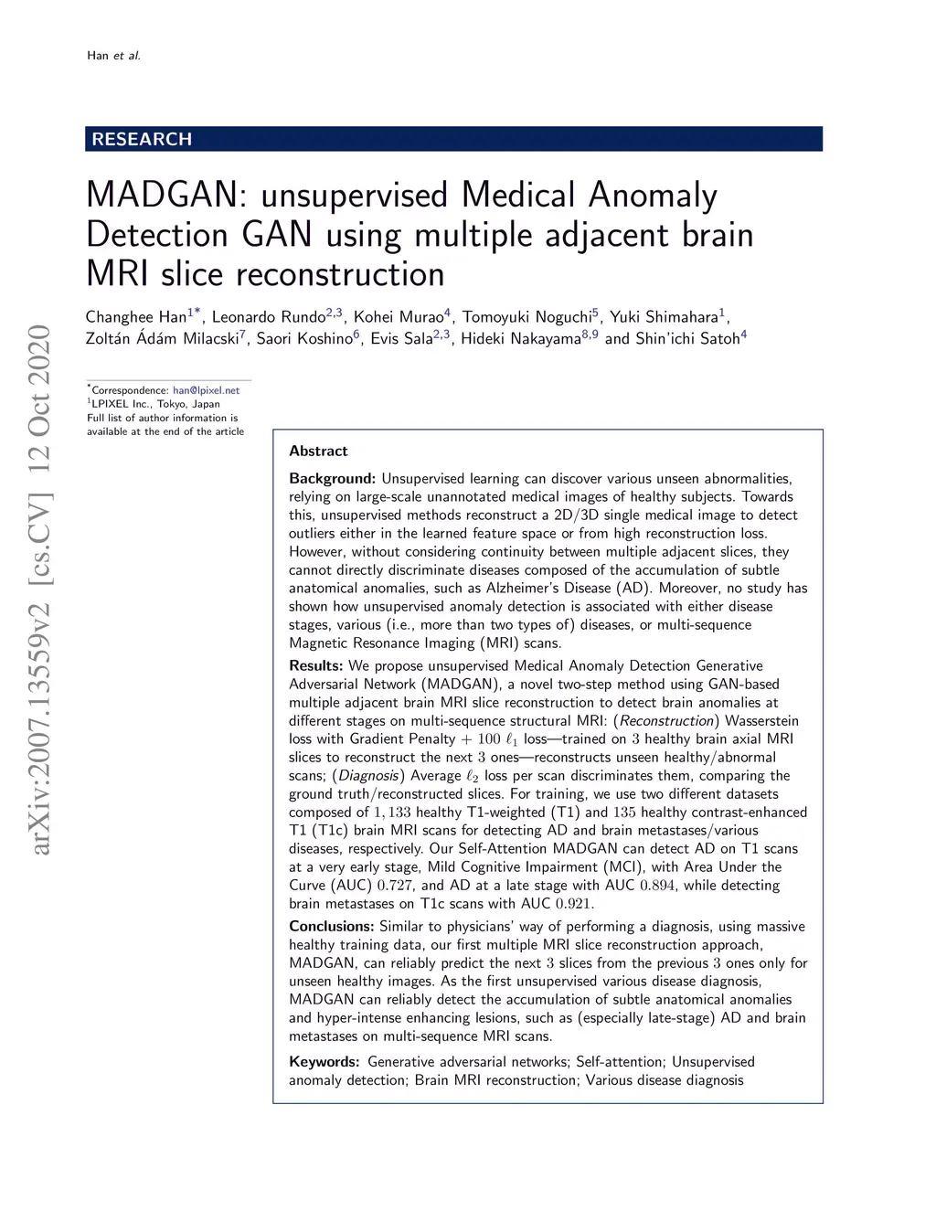 MADGAN: unsupervised Medical Anomaly Detection GAN using multiple