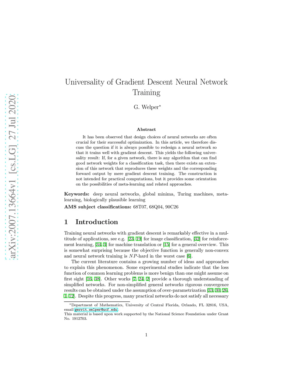 It has been observed that design choices of neural networks are often crucial for their successful optimization. In this article, we therefore discuss the question if it is always possible to redesign a neural network so that it trains well with gradient descent. This yields the following universality result: If, for a given network, there is any algorithm that can find good network weights for a classification task, then there exists an extension of this network that reproduces these weights and the corresponding forward output by mere gradient descent training. The construction is not intended for practical computations, but it provides some orientation on the possibilities of meta-learning and related approaches.