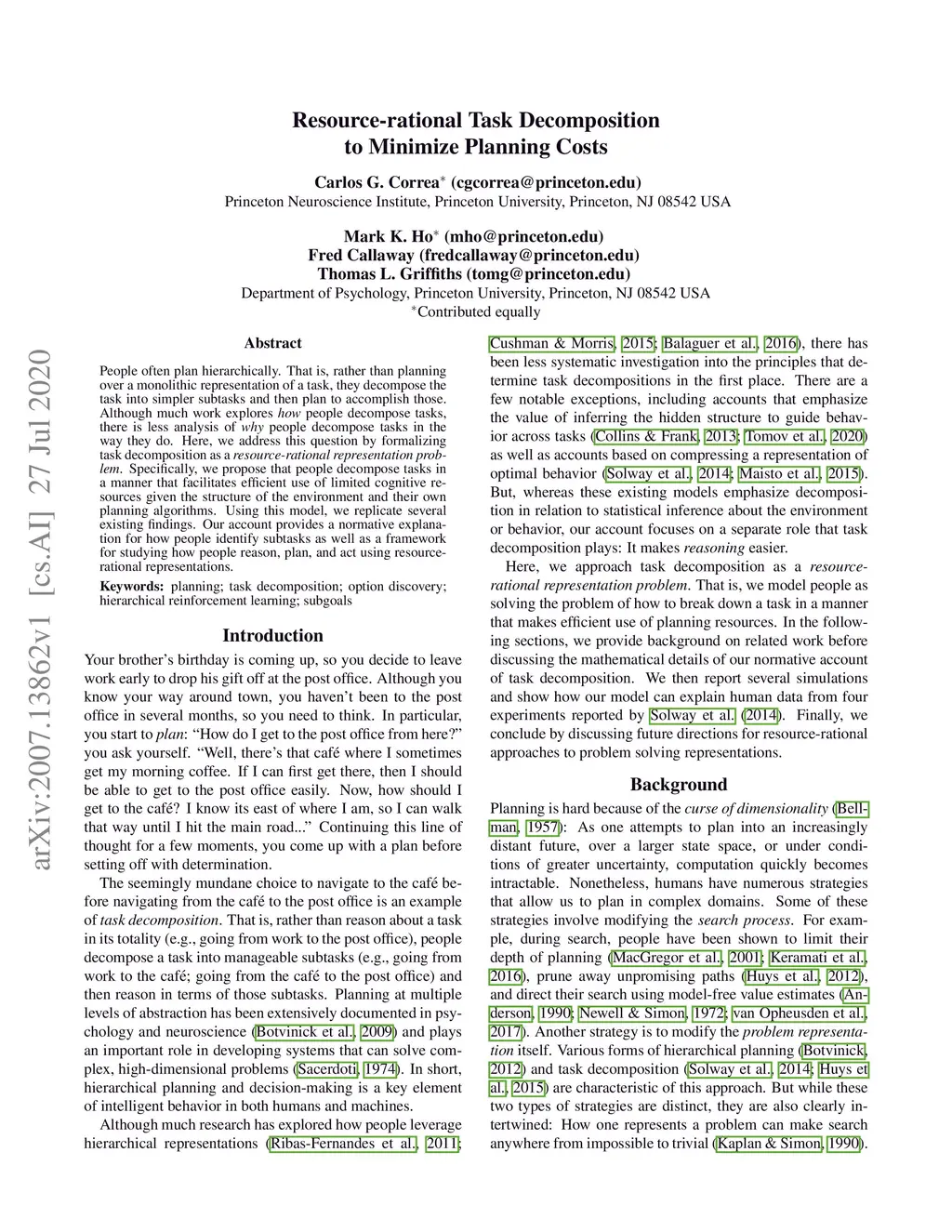 Resource-rational Task Decomposition to Minimize Planning Costs