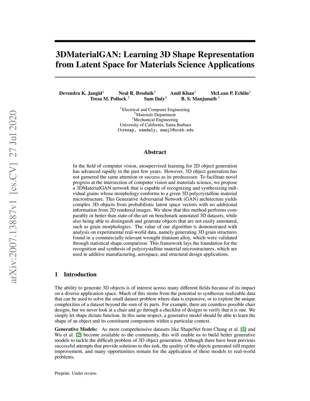 In the field of computer vision, unsupervised learning for 2D object generation has advanced rapidly in the past few years. However, 3D object generation has not garnered the same attention or success as its predecessor. To facilitate novel progress at the intersection of computer vision and materials science, we propose a 3DMaterialGAN network that is capable of recognizing and synthesizing individual grains whose morphology conforms to a given 3D polycrystalline material microstructure. This Generative Adversarial Network (GAN) architecture yields complex 3D objects from probabilistic latent space vectors with no additional information from 2D rendered images. We show that this method performs comparably or better than state-of-the-art on benchmark annotated 3D datasets, while also being able to distinguish and generate objects that are not easily annotated, such as grain morphologies. The value of our algorithm is demonstrated with analysis on experimental real-world data, namely generating 3D grain structures found in a commercially relevant wrought titanium alloy, which were validated through statistical shape comparison. This framework lays the foundation for the recognition and synthesis of polycrystalline material microstructures, which are used in additive manufacturing, aerospace, and structural design applications.