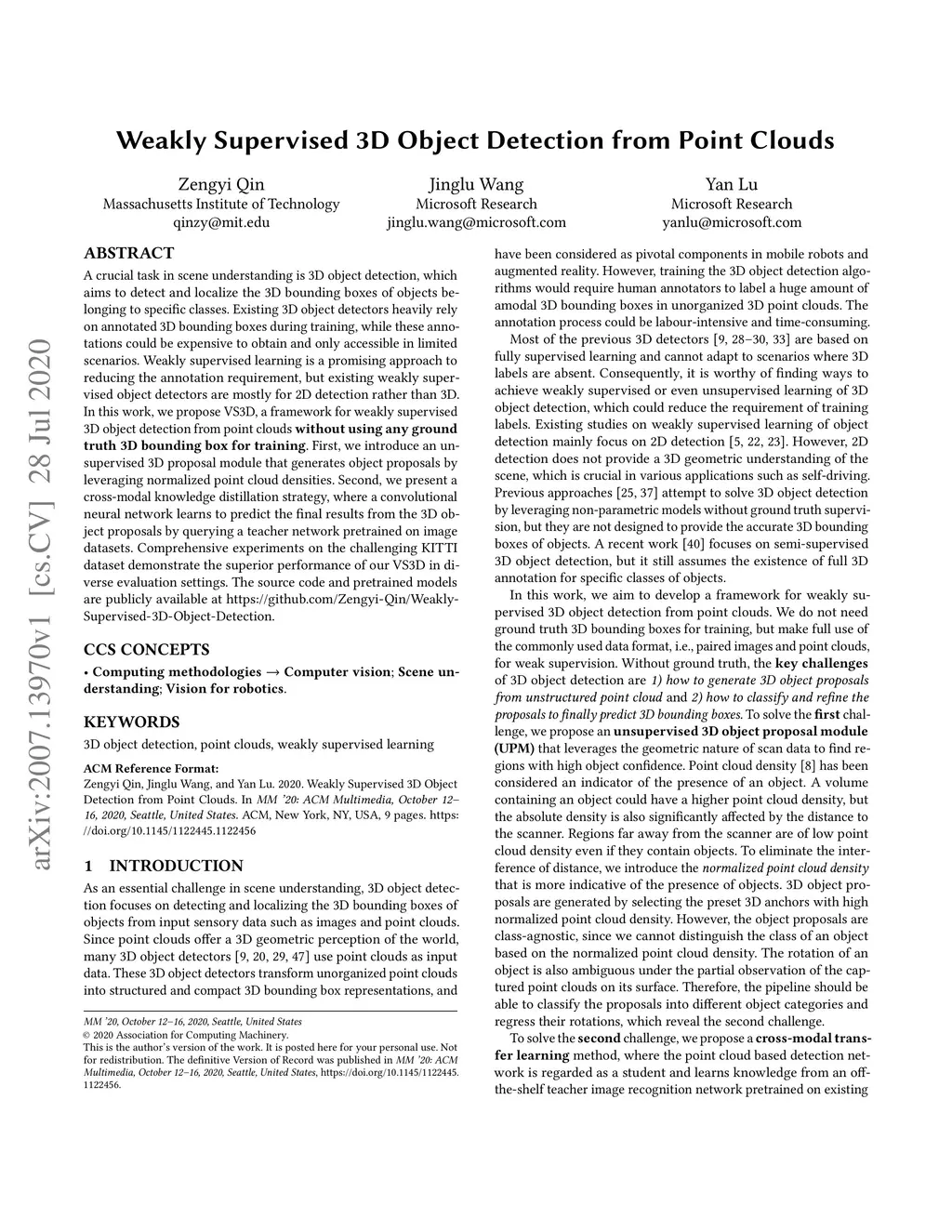 Weakly Supervised 3D Object Detection from Point Clouds