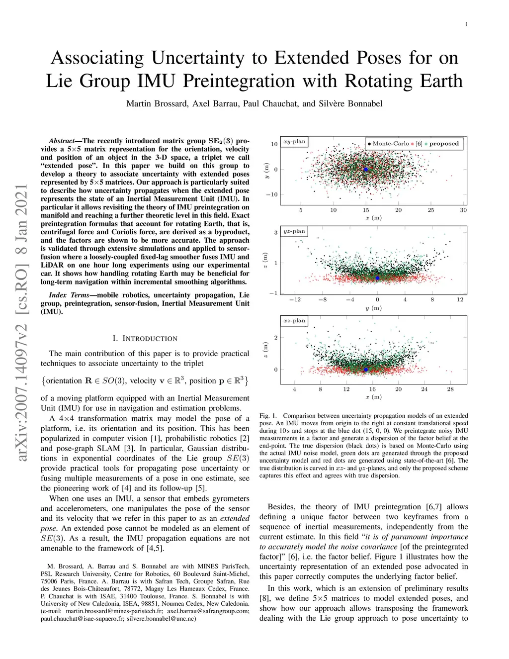 Associating Uncertainty to Extended Poses for on Lie Group IMU